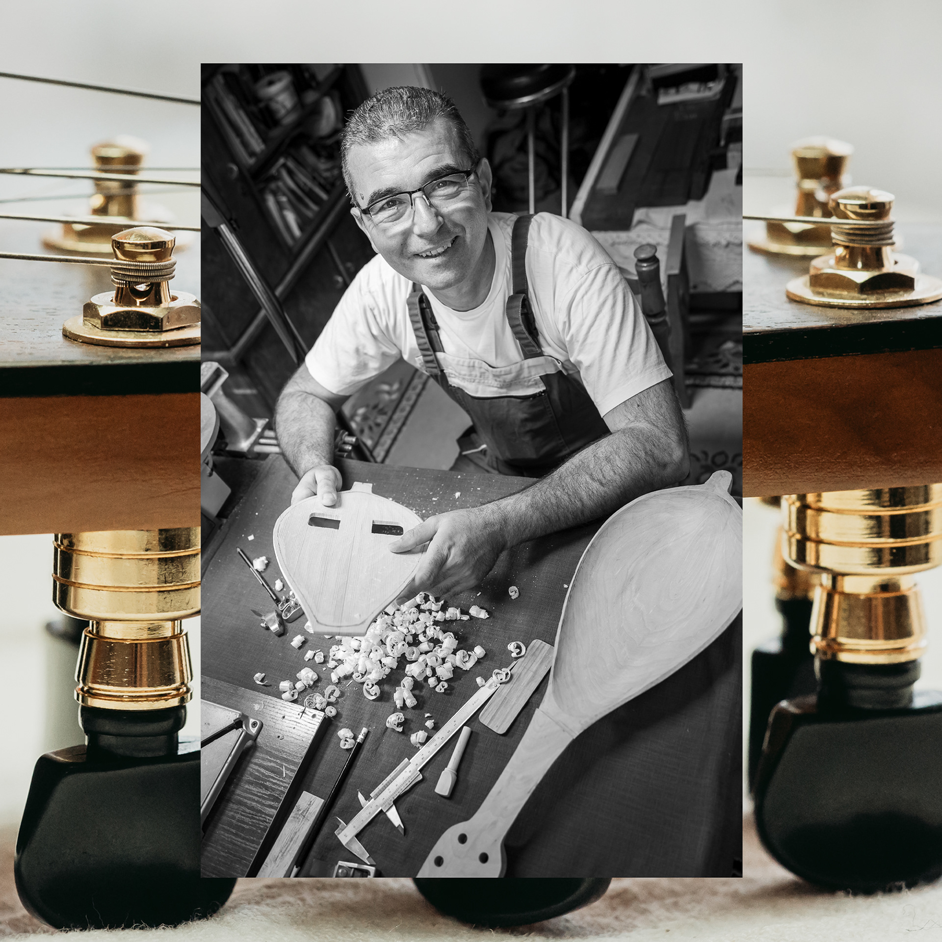 Deyan Denchev (49 y.o., Razgrad), master luthier, maker of gadulka (rebec) stringed instruments.