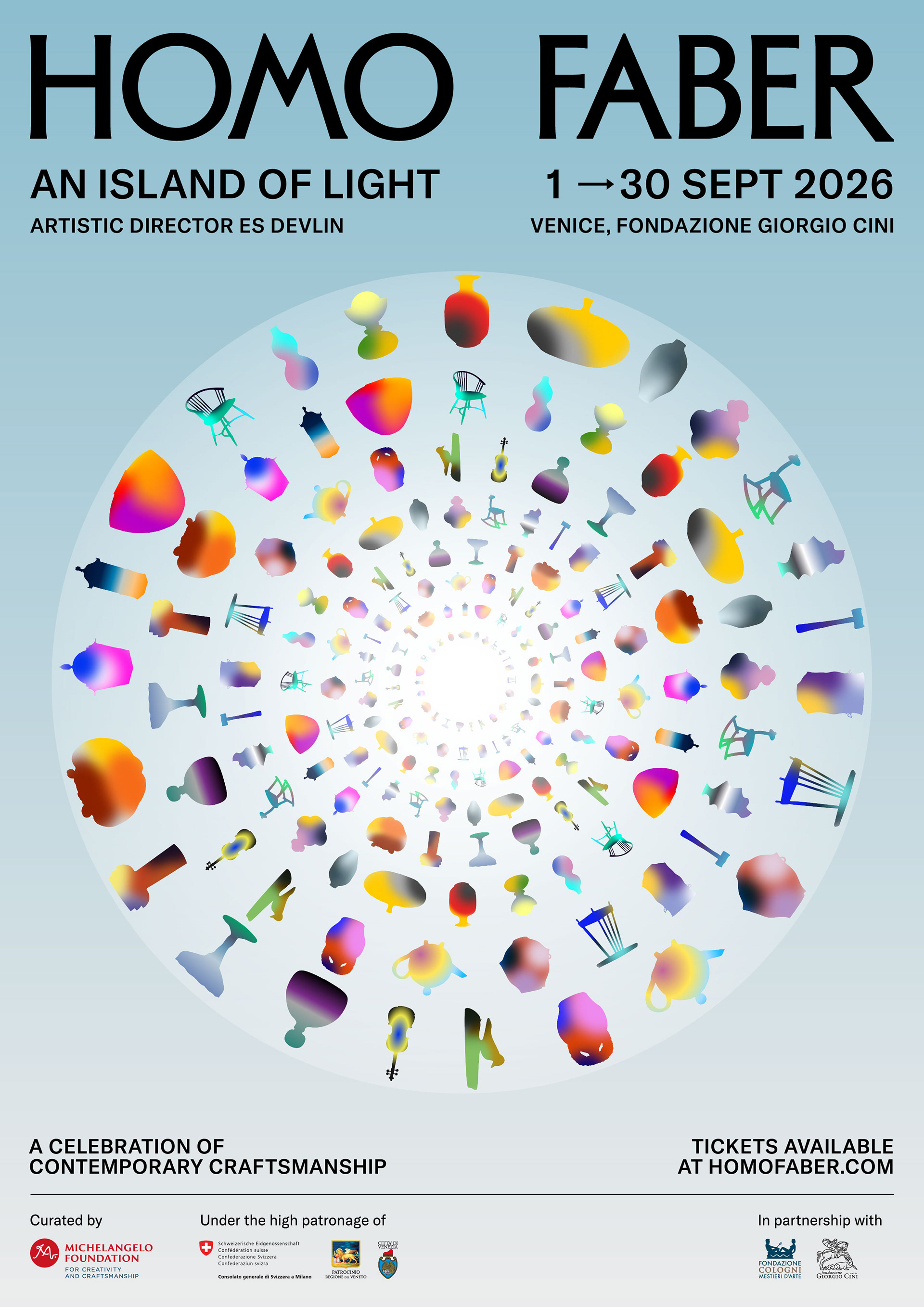 Четвъртото издание на биеналето „Хомо Фабер“ ще се проведе от 1 до 30 септември 2026 г. на остров Сан Джорджо Маджоре, в партньорство с фондация „Джорджо Чини“. Изданието е курирано от Фондация „Микеланджело“ за креативност и майсторство и носи заглавие „Остров от светлина“, като поставя фокус върху фундаменталната връзка между светлината, материалите и човешката ръка.