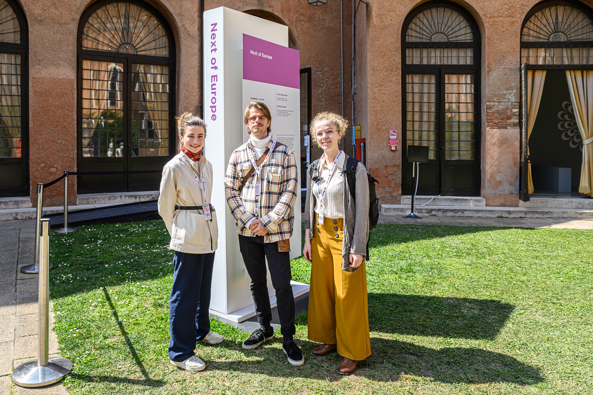 От ляво на дясно – Петя Танева, участничка в „Програма Млади посланици“ на биеналето Хомо Фабер през 2022 г, Стопа̀н, артизан и участник в биеналето и Росина Пенчева, българския посланик в международната мрежа Хомо Фабер / фотография: Цветина Даскалова, Венеция, 2022 г.