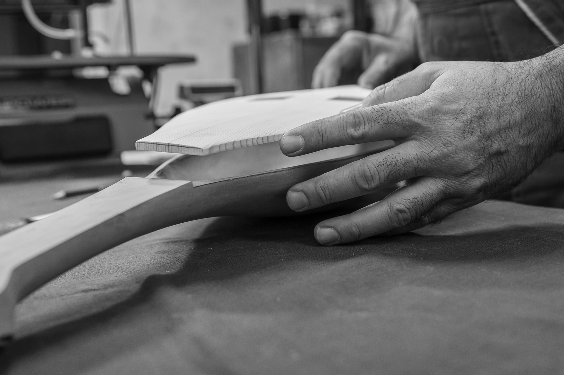 Рендосване на едната от двете половинки (препасване), за да се слепят впоследствие една за друга в резонаторния капак